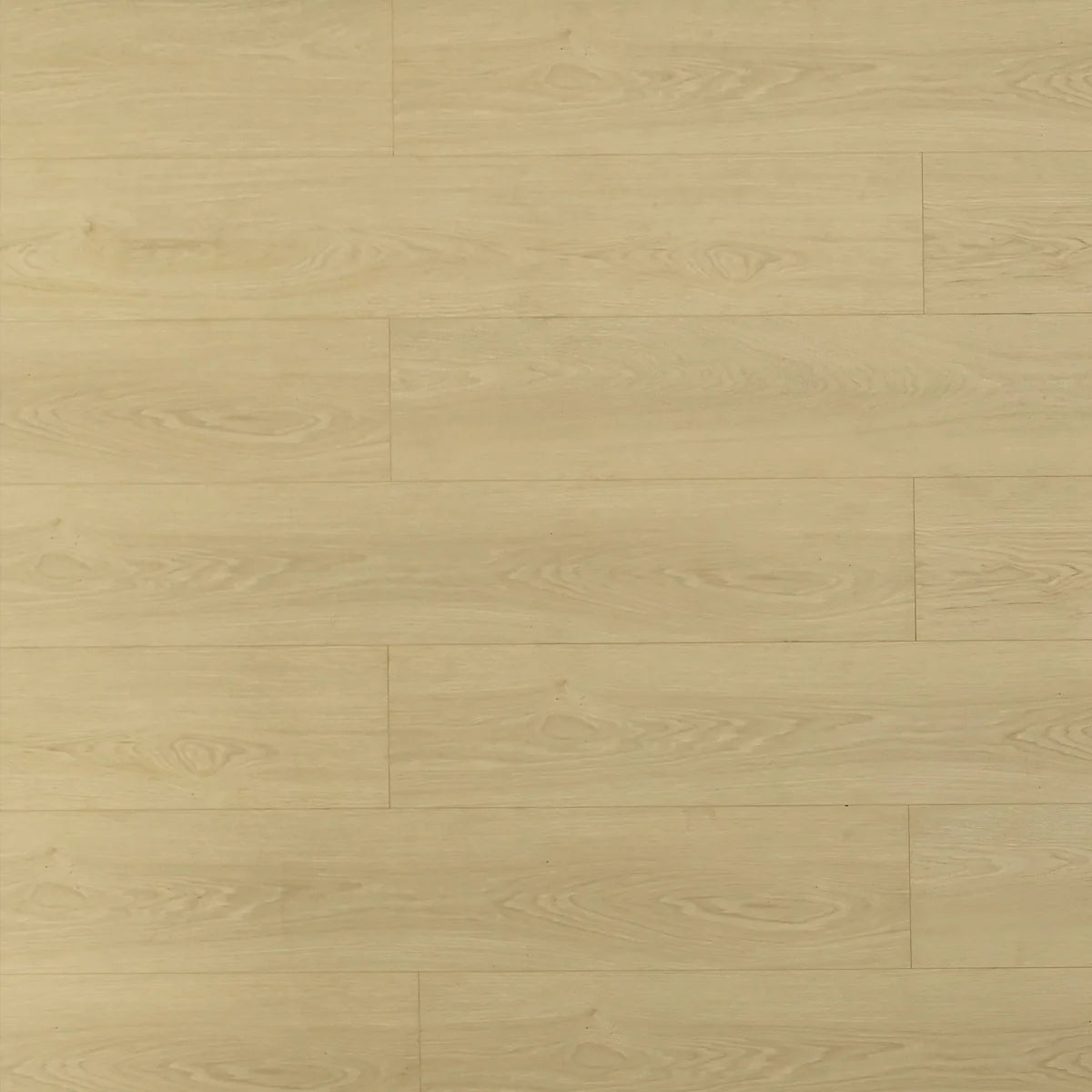 Laminate Flooring — TF8103. SKU: TF8103 | Colour: Beige & Tan | Shade: Light | Tone: Warm | Size: 59.85" x 9.38" x 0.4" (1520 x 238 x (8+2)mm) | Surface: Embossed in Register | AC Rating: AC4 | Core: High Water-Resistance HDF | Locking: Drop Lock | Underpad: Pre-attached 2mm | Sq.Ft. Per Box: 23.37 (6 pcs) | 72-Hour Waterproof Protection · Pre-attached 2mm pad for comfort & noise reduction · CARB2 & FloorScore® certified · Extreme scratch-resistant · Easy drop lock installation · Authentic woodgrain texture · Low maintenance & stain-resistant. Rooms: Living Room, Bedroom, Kitchen, Dining Room. Warranty: 30-Year Residential / 15-Year Commercial